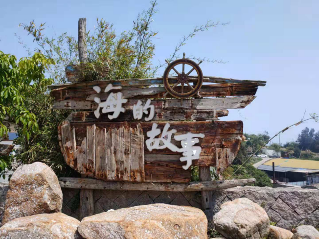 十点多,我们一行到达了平流尾地质公园。平流尾地质公园依托一块巨大平坦的火山岩石修建而成,因地处茭南村村尾,且以此块巨石作为隔段,沿岸海水左促右缓,故当地村民称之为平流尾。公园内在岩石的较高处,建有可供行人凭栏远眺、观海听涛的亭子,有一处“海天一览”的石柱,还有几处利用拆下破旧的舢板上标有浪漫气息的文化小语,让人倍感温馨亲切,思绪翩跹。大自然的鬼斧神工,把这块突出的半岛火山岩石雕饰得万千形态。