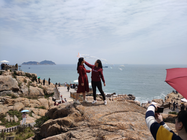 教职工们在这面朝大海、春暖花开的美妙时光里,顿觉视野开阔,心旷神怡,尽情的呼喊与放歌,将平日的工作压力释放于包容万象的大海,摆出各种造型,留下难忘的瞬间。碧海蓝天中偶尔能见到游船、小舢船等从海上驶过,越行越远,让人不由得敬佩在海里讨食与浪争锋的勇敢渔民们。