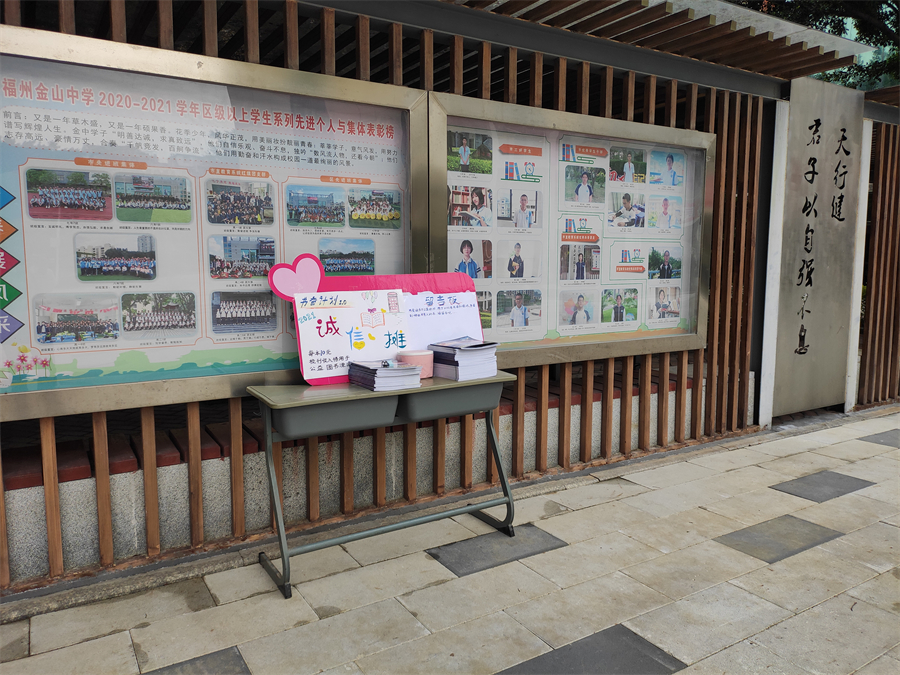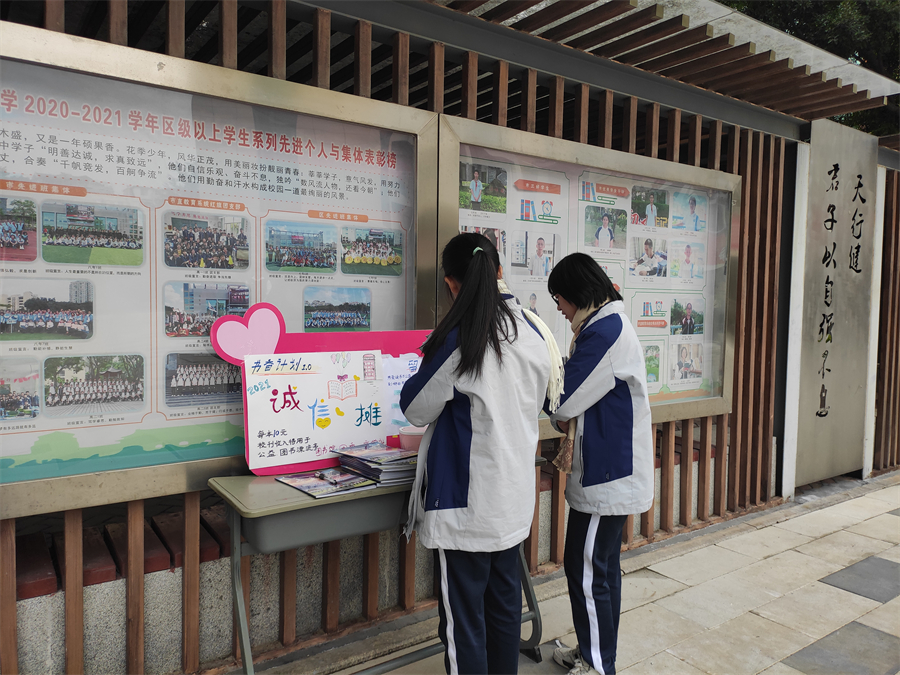 与诚信同行,亦是与美德同行。诚信书摊培养学生阅读和诚实守信的习惯,让书香飘满校园。
