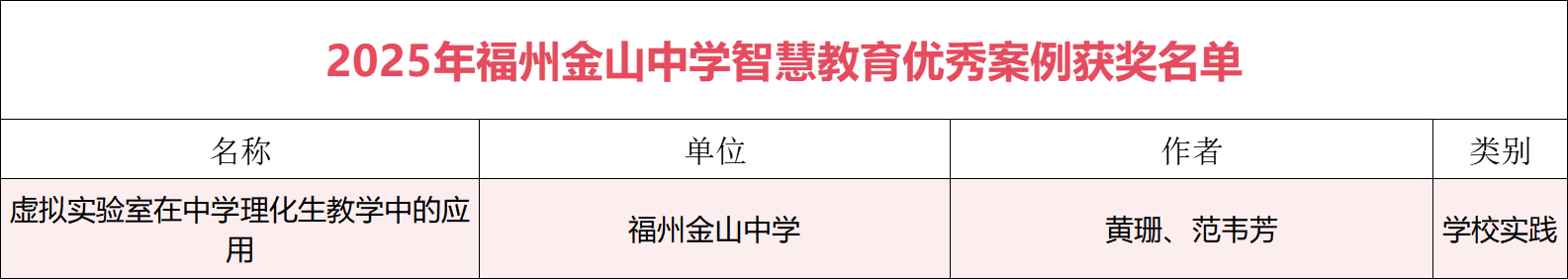 据《福州市教育局关于征集2025年度智慧教育优秀案例的通知》(榕教直〔2025〕6号),福州市电化教育馆组织专家对智慧教育优秀案例进行了评选,我校黄珊、范韦芳老师的案例在诸多作品中脱颖而出,以先进的设计理念、扎实的实践探索和显著的教学效果,荣获三等奖!