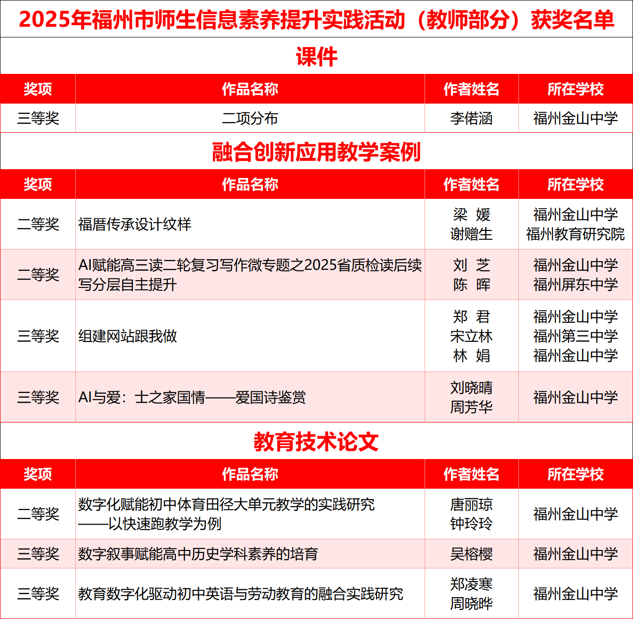 喜报丨热烈祝贺我校13位教师在2025年福州市师生信息素养提升实践活动中获奖