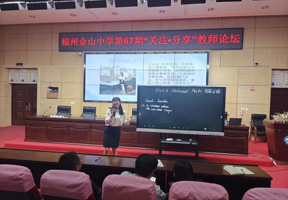 郑潇潇老师围绕国家公园展开教学。先以提问引入,探讨曾去过的国家公园及印象深刻之处,进而介绍瑞典的萨勒克国家公园,分析其段落要点,包括极昼现象、冰川遗迹、游牧文化等,并通过绘图辅助理解。接着聚焦福建武夷山国家公园,从独特丹霞地貌、山水风光,到深厚的茶文化、朱子理学文化,并引导学生用五种感官描绘武夷山。最后总结国家公园中人与自然和谐共处,传统文化代代传承。布置介绍武夷山的写作任务,强化学生的跨文化交际意识以及对家乡国家公园的认知与热爱。