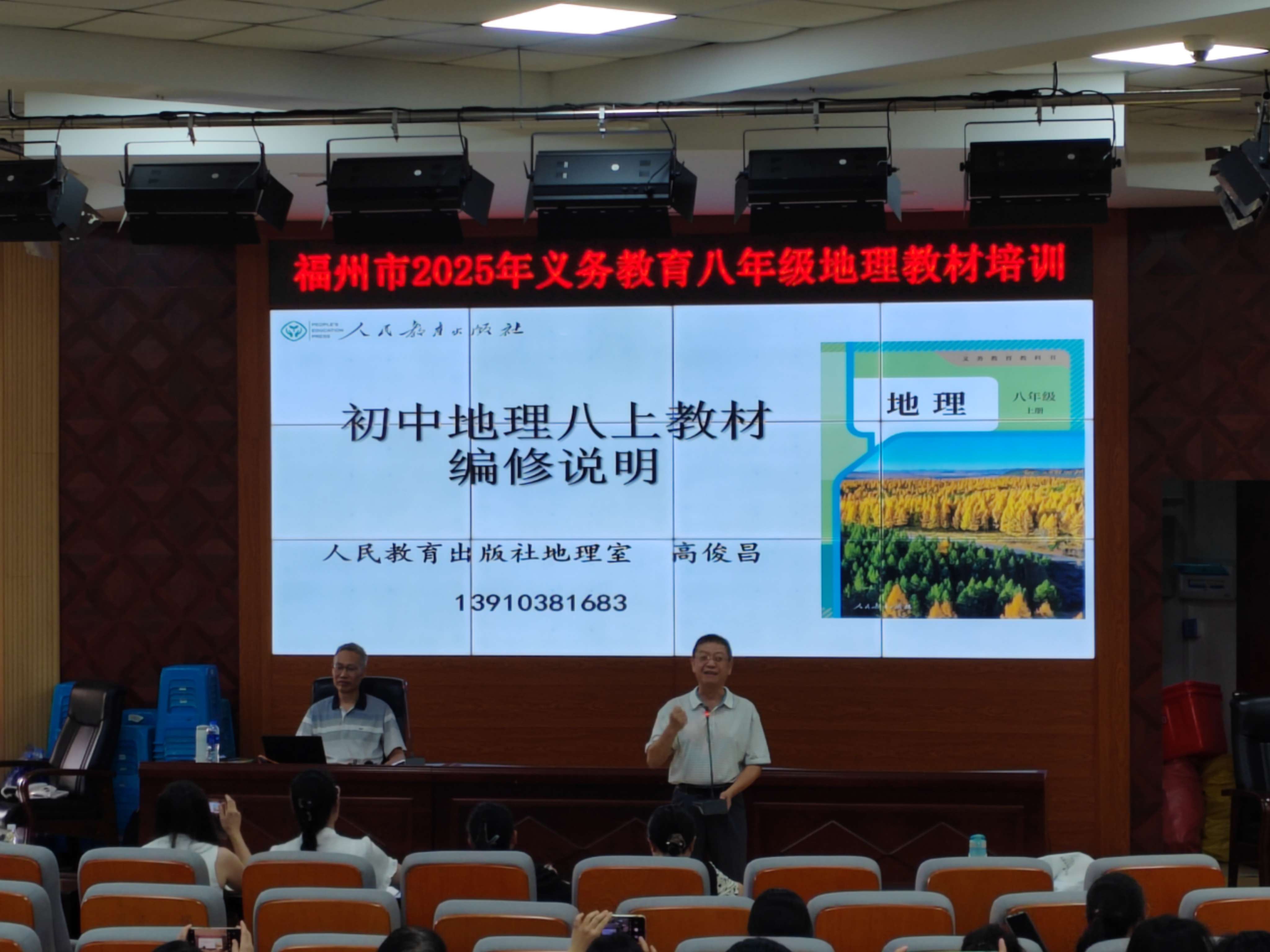 培训由福州教育研究院的王信文老师担任主持人。王老师以专业且亲切的开场,为培训营造了良好的氛围,引导教师们迅速进入学习状态。而此次培训的主讲人更是重磅级人物——人民教育出版社地理教材主编高俊昌。高主编在地理教材编写领域有着深厚的造诣和丰富的经验,他的到来让参训教师们满怀期待。