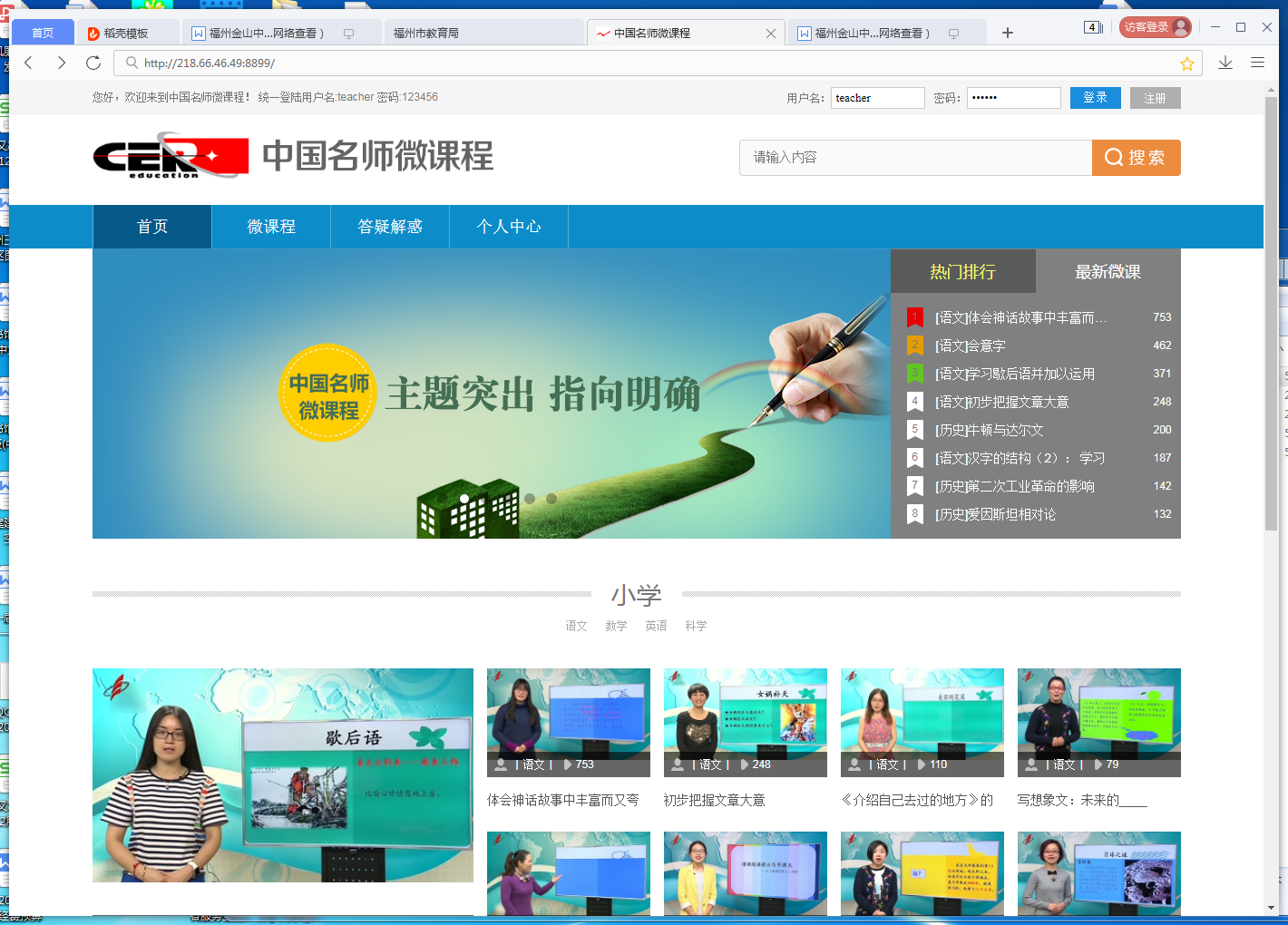 福州市教育局城域网资源库(截屏)