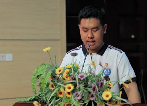 学生会主席周文涛代表学生会作工作报告,他从学生的自我管理、自我服务和自我发展三方面梳理,强调学生会开展活动的主体意识和服务意识,并期待在金中二十周年为学校再添青春之彩。