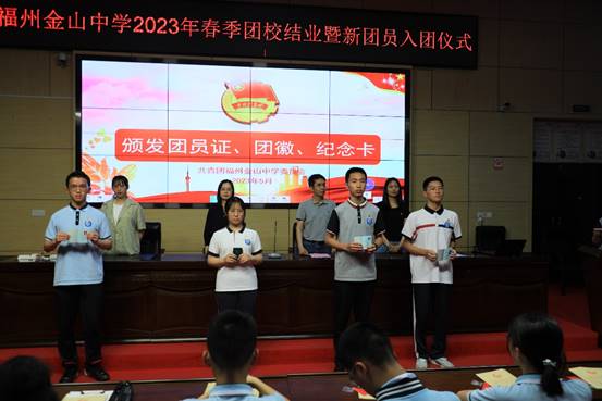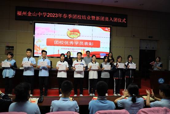 经过团校学习、结业考试、支部大会表决通过等一系列程序,本期入团积极分子顺利加入中国共青团,这是他们一直以来向往的政治组织,也是他们心中追求进步的青年集体。在入团仪式上,来自不同年级的百余名学员正式加入中国共青团,领导为团员代表颁发了入团纪念卡、团员证、团徽。