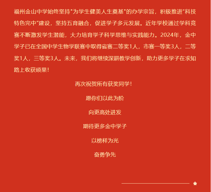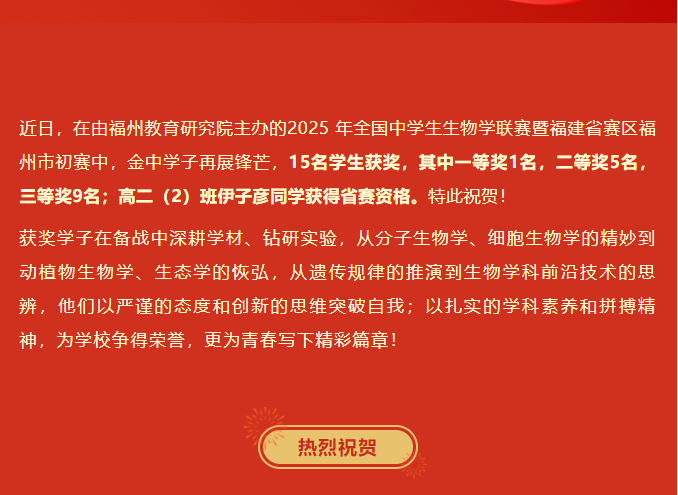 喜报 | Betway必威手机版15名学子在全国生物学学科竞赛福州赛区勇创佳绩
