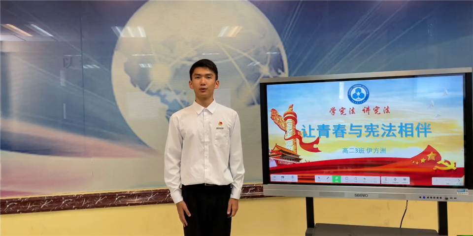 “大家好!我是来自Betway必威手机版的一名高二学生,我叫伊方洲,今年我十七岁,正是青春的年龄,所以,我今天演讲题目是《让青春与宪法相伴》。青春,是一个美好的词,一代人有一代的青春,对于我来说,我这一代的青春,我认为是幸运的。说我幸运,因为我出生在一个崭新的时代,生长在一个法治的社会,一个法治的国家。……”这是来自高二3班伊方洲同学的演讲稿,他用自己生动有力的演讲诠释了他对于宪法的理解。在2021年10月由福州市教育局第六届学生“学宪法 讲宪法”活动中高二3班伊方洲荣获高中组一等奖。
