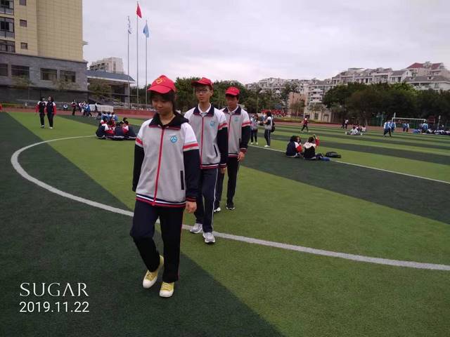 文明督导队在行动 文章来源:本站原创 作者:德育处 发布时间:2019-12-28 阅读数: 11月21-22日我校举办第十八届田径运动会,在运动场上除了奋力拼搏的运动员们,还有一群特殊的人,他们就是我校的学生文明督导队队员。