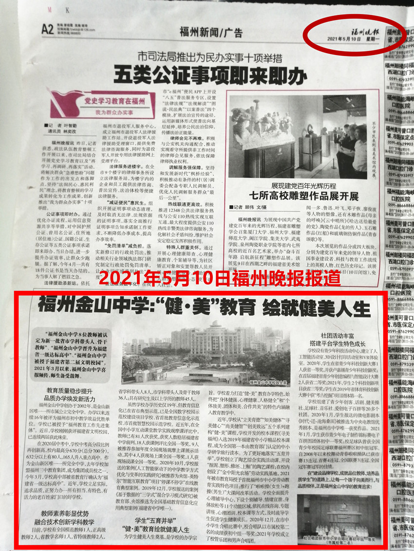 【福州晚报】“健·美”教育 绘就健美人生 文章来源:本站原创 作者:郑景梅 发布时间:2021-05-18 阅读数: 近年,学校立足实际,追求品质,正努力办一所有担当、有特色、有活力的老百姓家门口的好学校。 2021年5月10日,福州晚报专版报道我校办学成果。